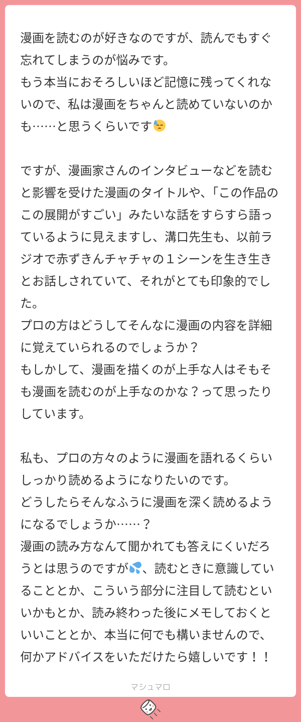 面白いって思ってもらえるだけじゃなくて、繰り返し読みたいって思ってもらえるような作品が描けるようになりたいなって思います。