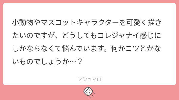 過去に「ミニキャラの描き方を教えてください」というご質問をいただき、YouTube生配信で説明したものを編集して動画にしたものがあるので、ご参考までにおいておきます。(モチーフが小動物とかじゃなくて女の子ですが表情の描き方とかは何かのヒントになるかも…?)