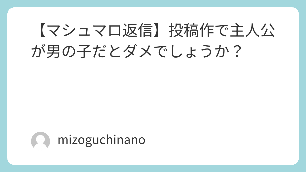 ただ、私としてはそんな必要なくても男の子主人公を描いたっていいじゃないかって思ったりもするんですよね。