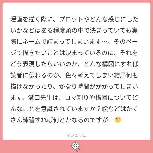 どんな「状況」を見せたいのか・何を見せたいのかをハッキリさせると、どんなコマ割りや構図が適してるかも見えてくるかと思います。