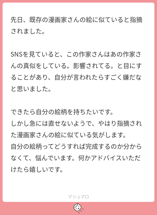 私も自分の絵柄とオリジナリティについてはよく悩んでました。