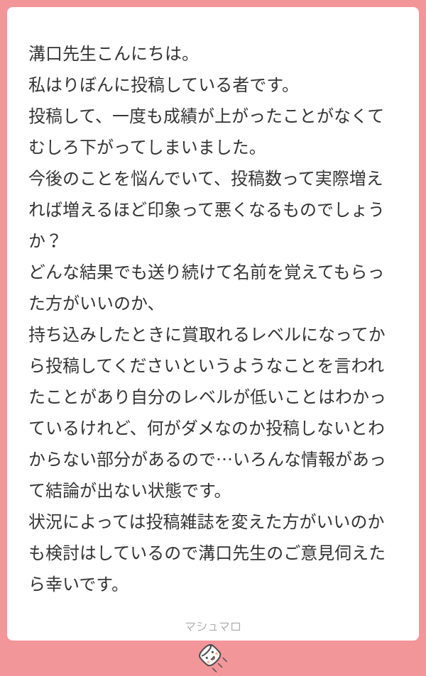 >投稿して、一度も成績が上がったことがなくてむしろ下がってしまいました。