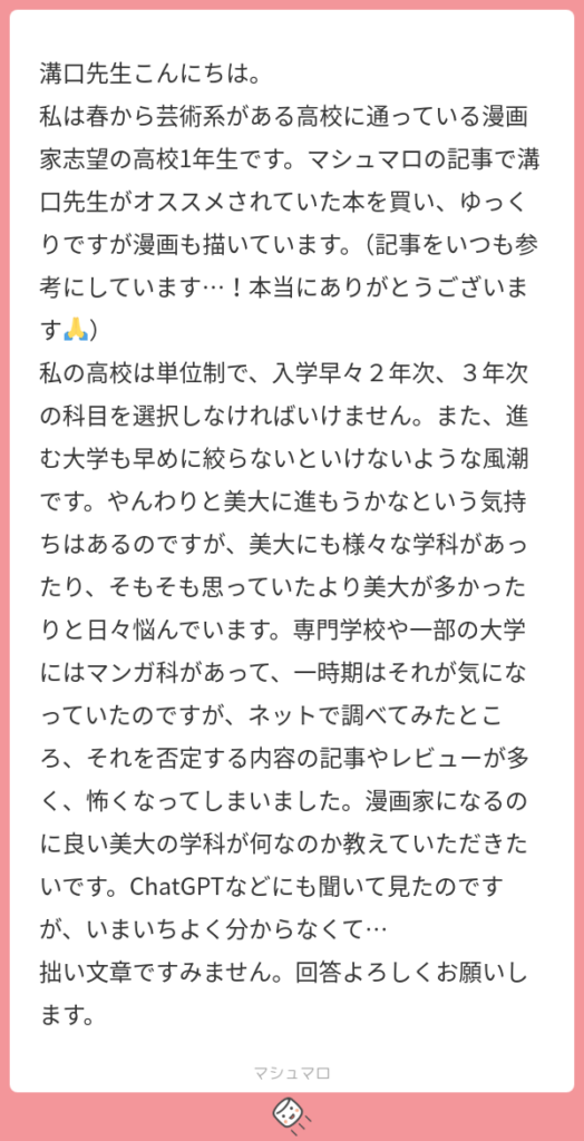 どの進路を選んでも、漫画を描き続ける時間を確保できる環境であれば大丈夫です。